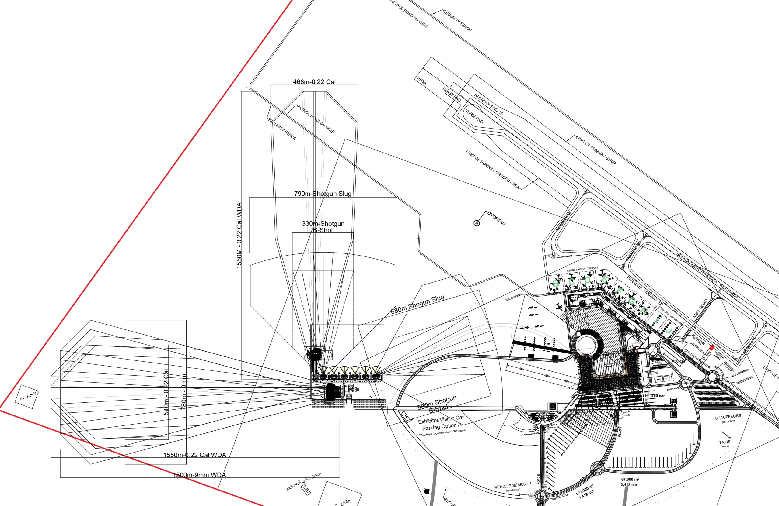 This site was to be used in conjunction with the World Defence Show 2022. The Falcon Club was to include an outdoor 100m range, two 50m NDA ranges and a series of shotgun skeet and trap ranges